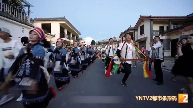 石林县石林街道办事处五棵树村村民委员会副主任 张智:“跟着我们阿诗玛、阿黑哥的脚步,跳起我们彝族大三弦,一起手拉手体验彝族火把节的魅力。大家玩累了以后可以到我们五棵树村体验我们的温泉,泡泡澡放松放松。”