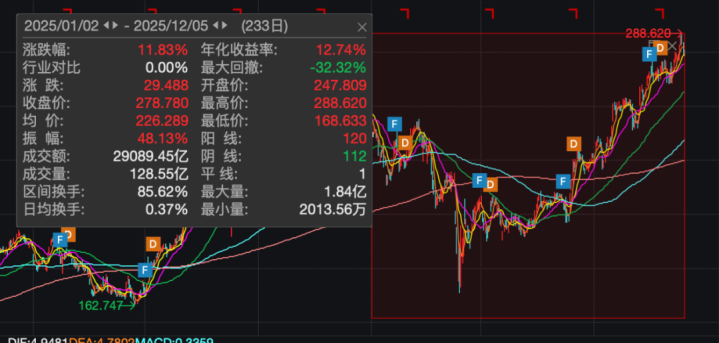 不过,随后几月股价震荡向上,截至当地时间12月5日,苹果股价跌0.68%,报278.78美元,最新市值为4.12万亿美元,今年累计上涨超11%。
