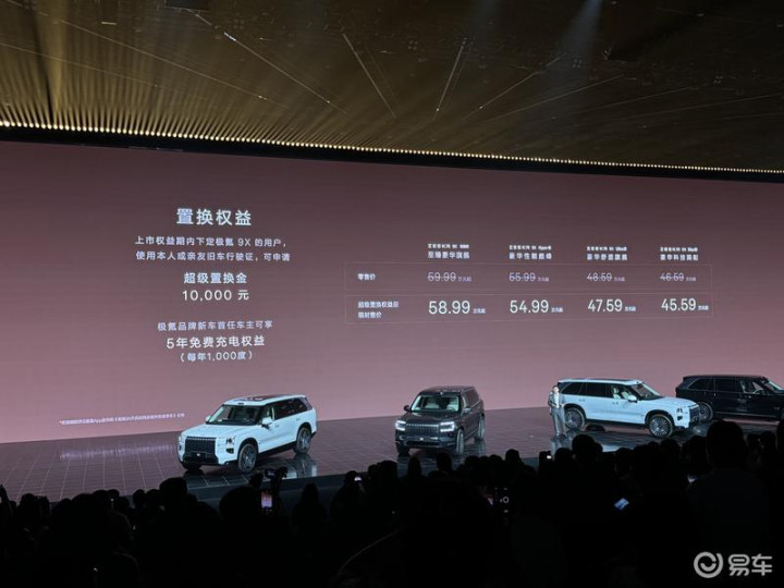 上市权益期内,下定极氪9X的用户,使用本人或亲友旧车行驶证,可申请超级置换金10000元;极氪品牌新车首任车主可享5年免费充电权益(每年1000度)。