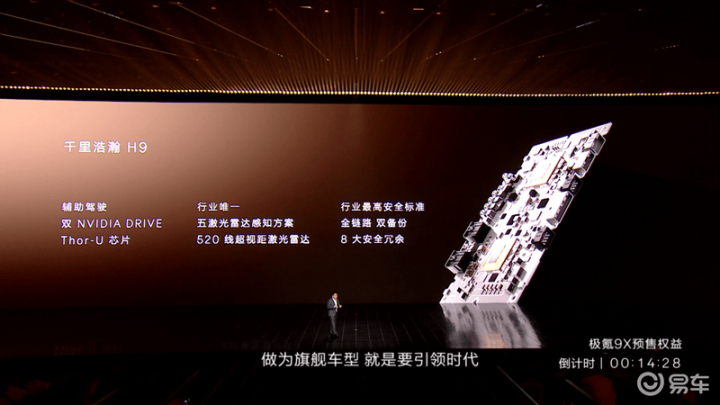 值得一提的是,在智能辅助驾驶方面,极氪9X的Hyper版还首发搭载千里浩瀚H9智驾方案。千里浩瀚H9智驾方案采用极氪L3级智能驾驶技术架构,搭载ZEEA3.0中央集中式数字架构,端到端链路响应速度提升50%。极氪L3级智能驾驶技术架构感知硬件将搭载5颗激光雷达方案,其中1颗为长距激光雷达和4颗补盲激光雷达。此外,新车为全球首个搭载两颗NVIDIADRIVEThor芯片,算力高达1400TOPS。