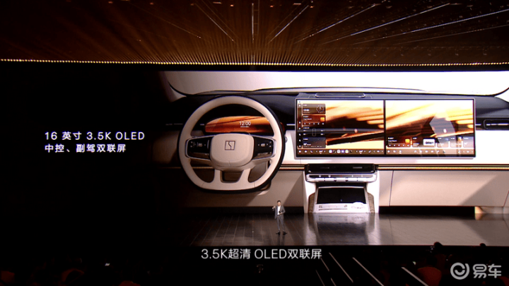 车辆的内饰采用环抱式的设计,并且采用了丰富的材质搭配,如木饰板、真皮、金属饰条等等,新车采用中控与副驾一体式的双联屏,搭配最新的极氪OS7.0车机系统,在系统的操作、SR的界面上都提供了全新的体验。极氪9X将会搭载来自英国的naim品牌音响。新车提供3排6座布局,第二排同样拥有娱乐屏的配置。